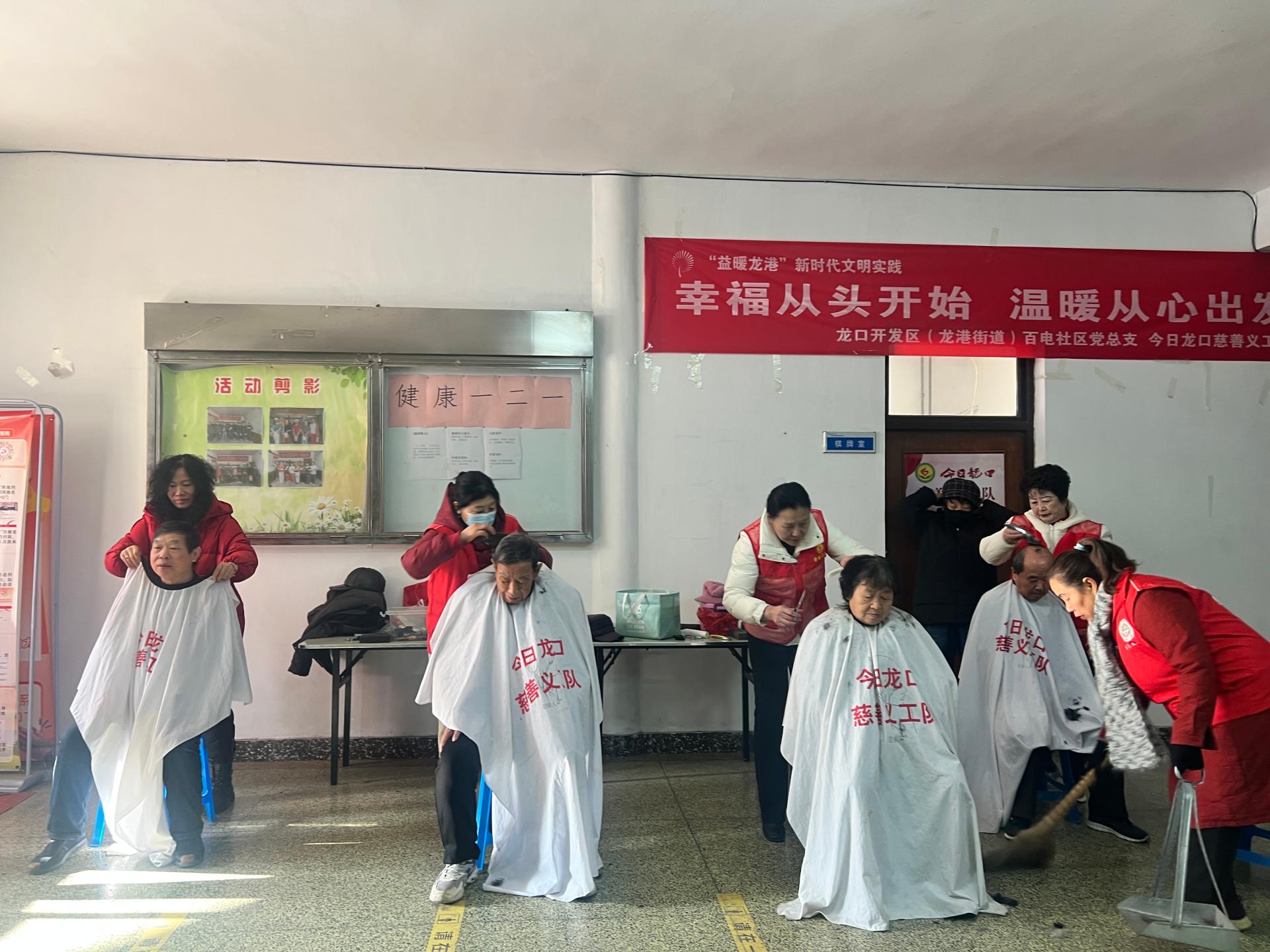 今日龙口慈善义工队常规志愿服务活动,每月一次走进龙港街道百安社区,为社区老人及残障人士免费理发等活动。