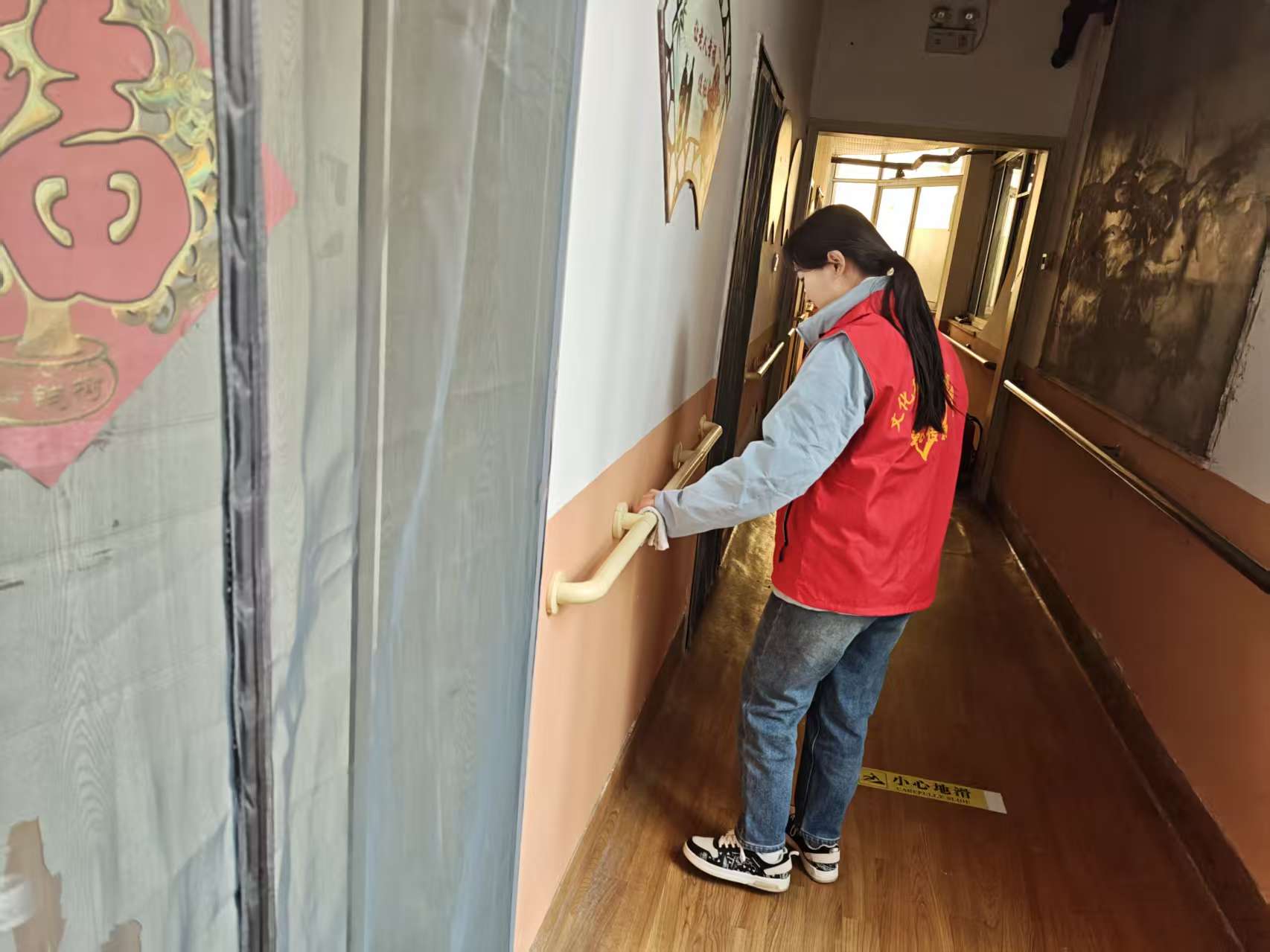 请自带工具,注意安全,认真对待此次清扫。墙面!清洁到位,做到无灰尘、痰迹、蜘蛛网。楼梯:拖拭干净整洁,扶手擦拭干净,做到无明显灰尘。