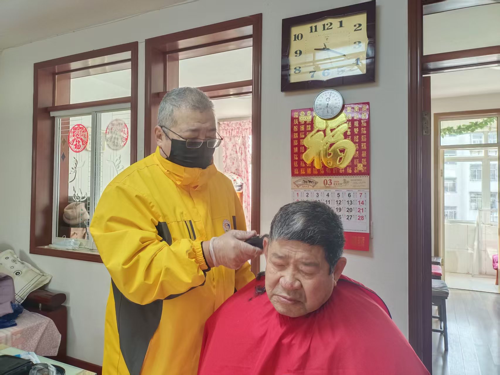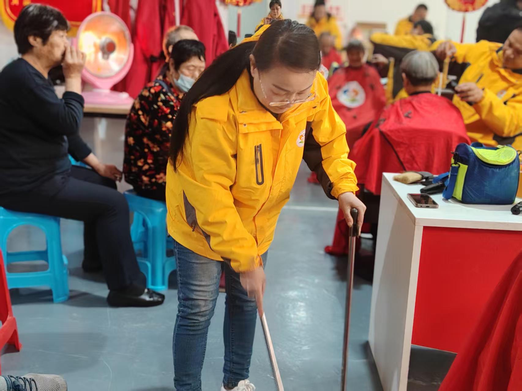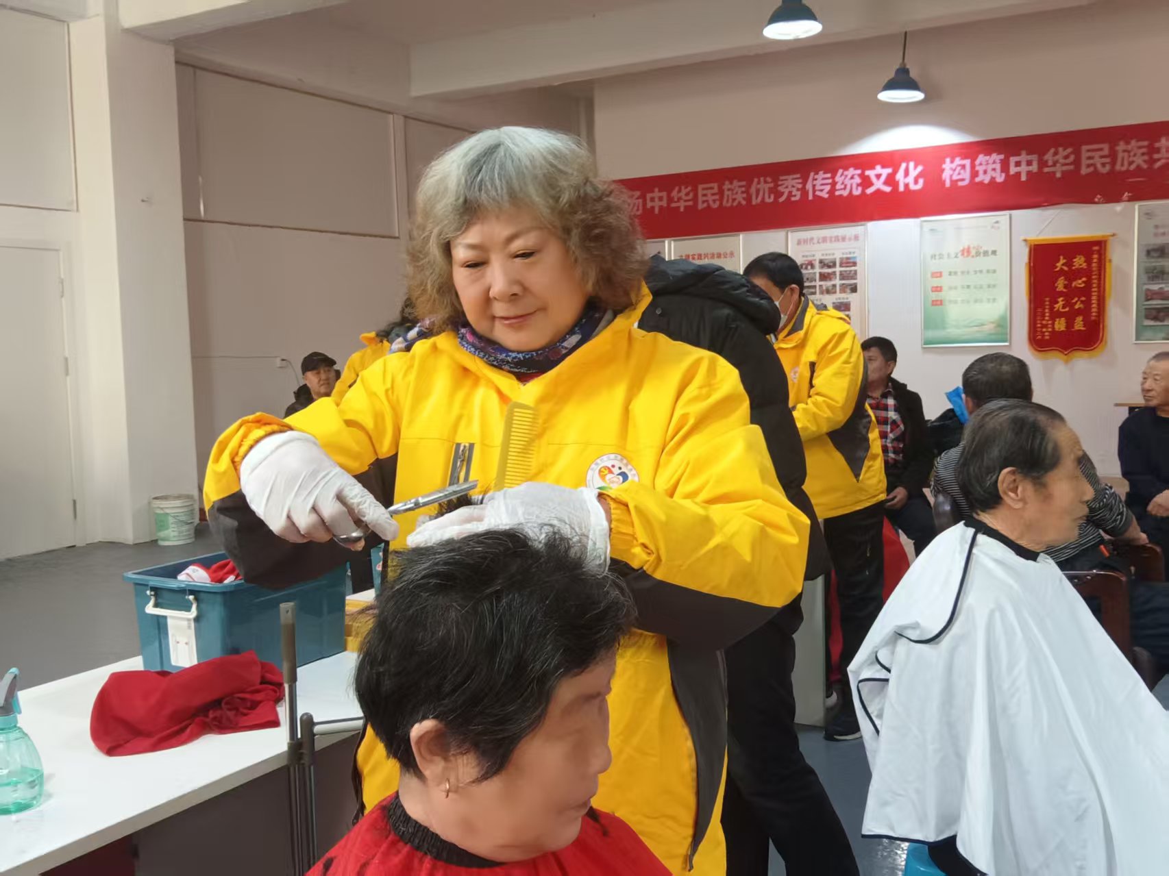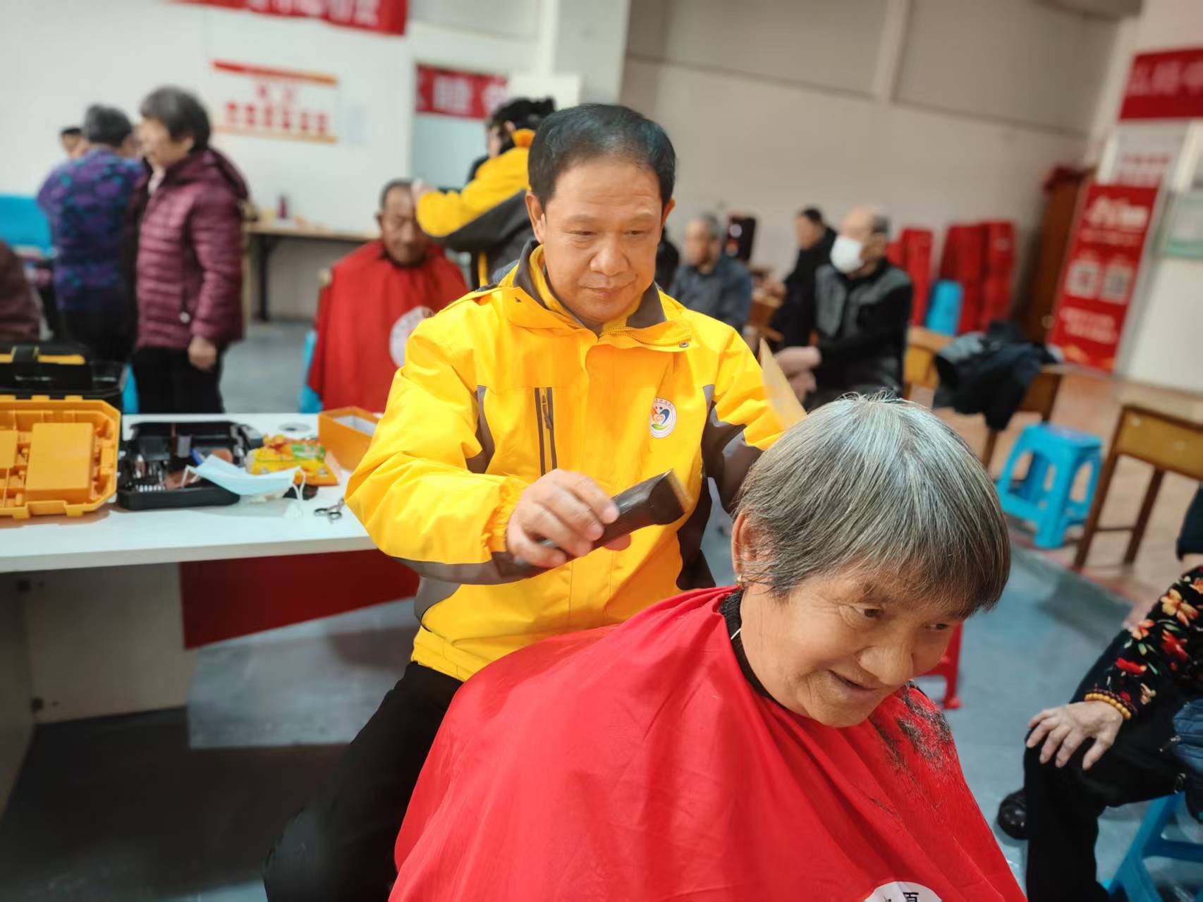 东城社区志愿服务队爱心义剪,每周二在龙华财富大厦院里社区活动室为老人免费理发,并且为腿脚不方便的老人上门服务。