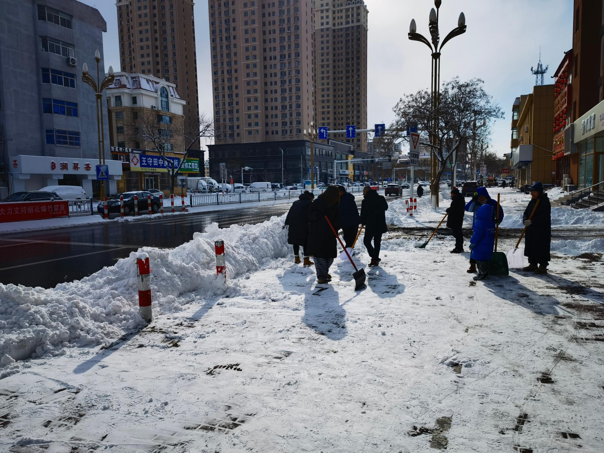 赴通海路与新区大街交叉红绿灯往北至城北村村碑的道路东西两侧进行积雪清理志愿活动,请志愿者携带扫雪工具,自行前往地点,注意安全。