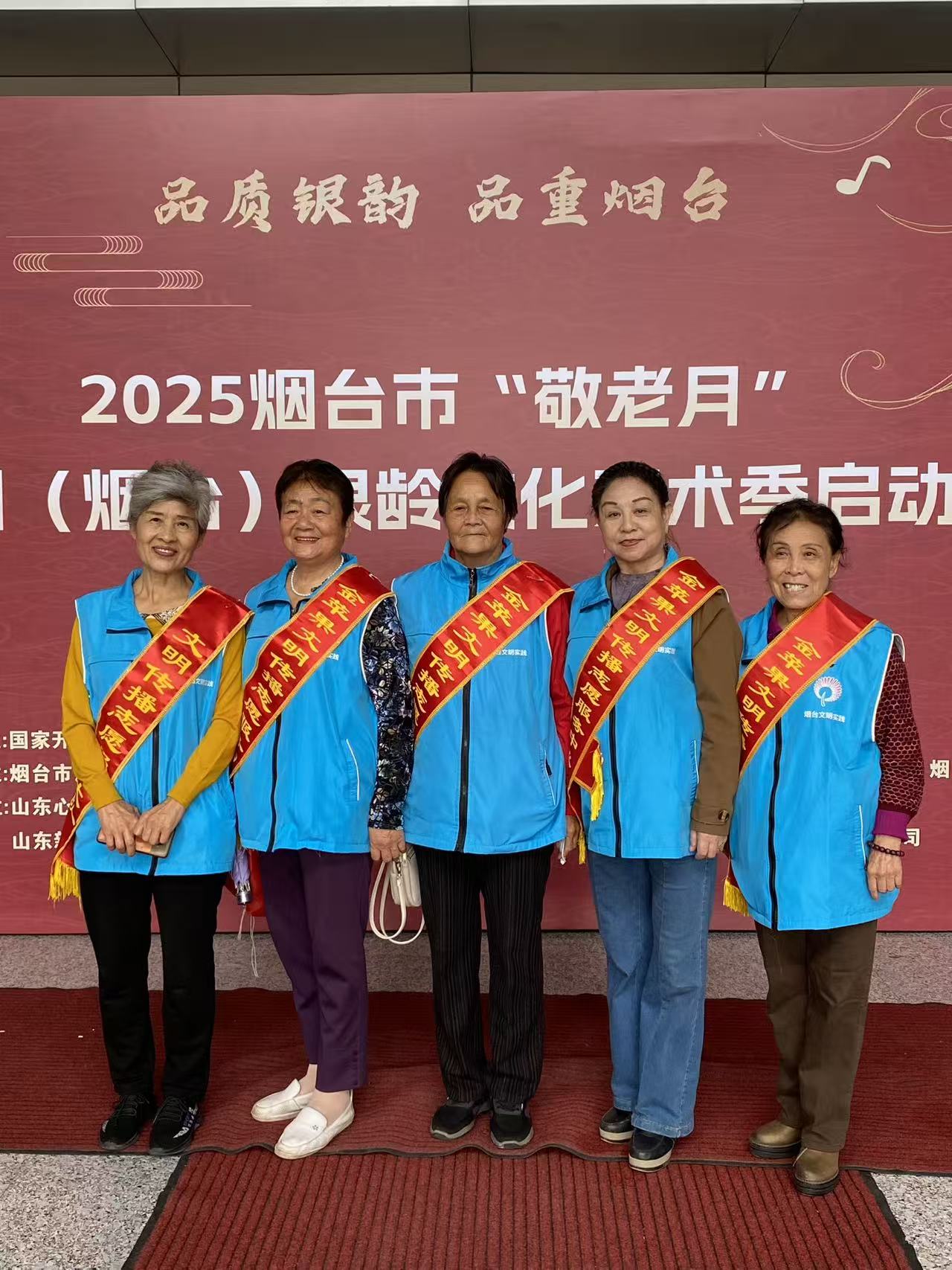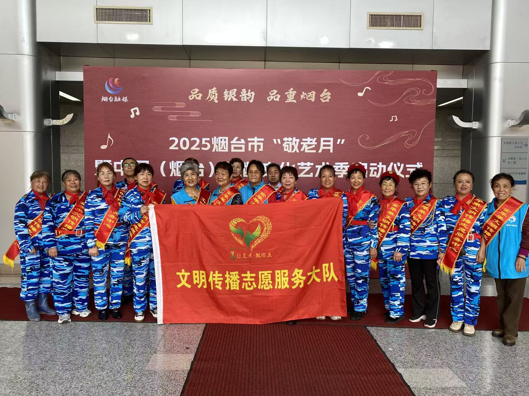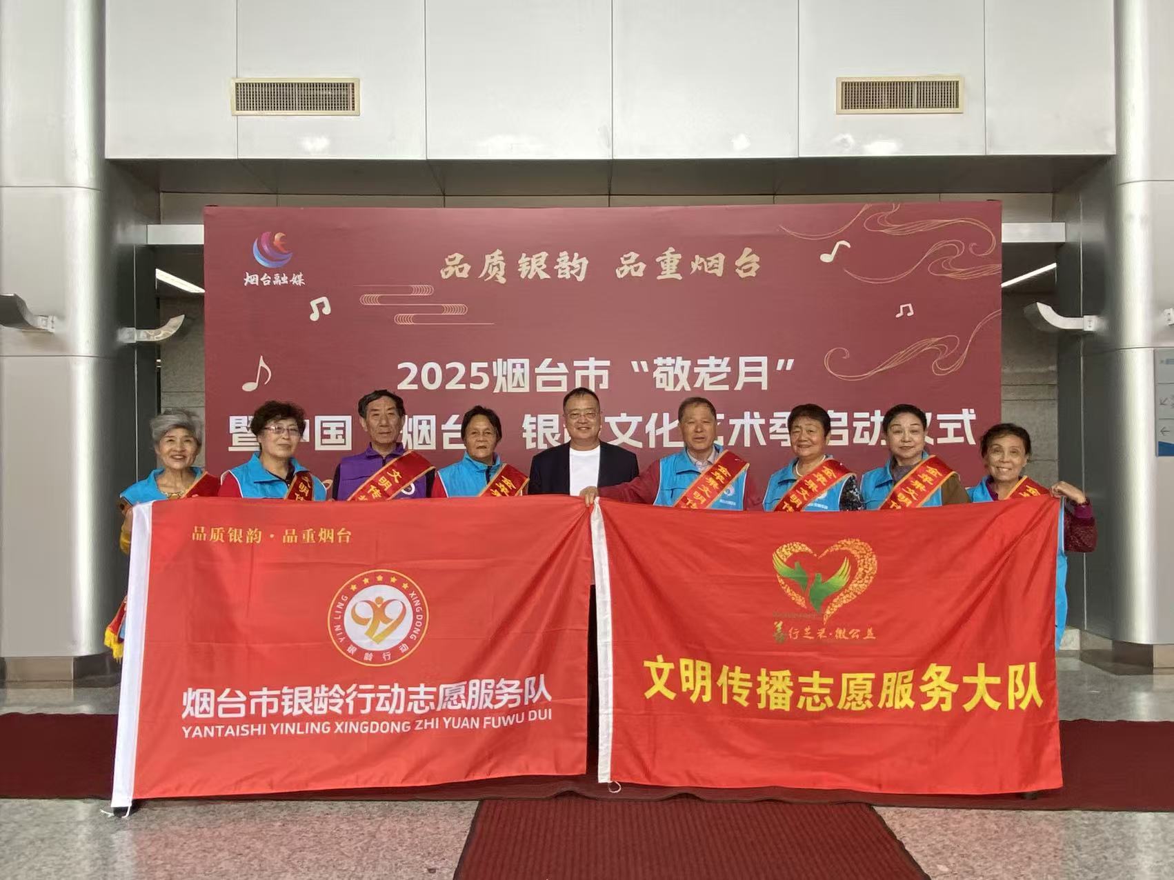芝罘区金苹果文明传播志愿服务中心,定宇2025年10月12日上午8时至1130时在烟台电视台举办烟台市银龄行动志愿服务队授旗仪式活幼。