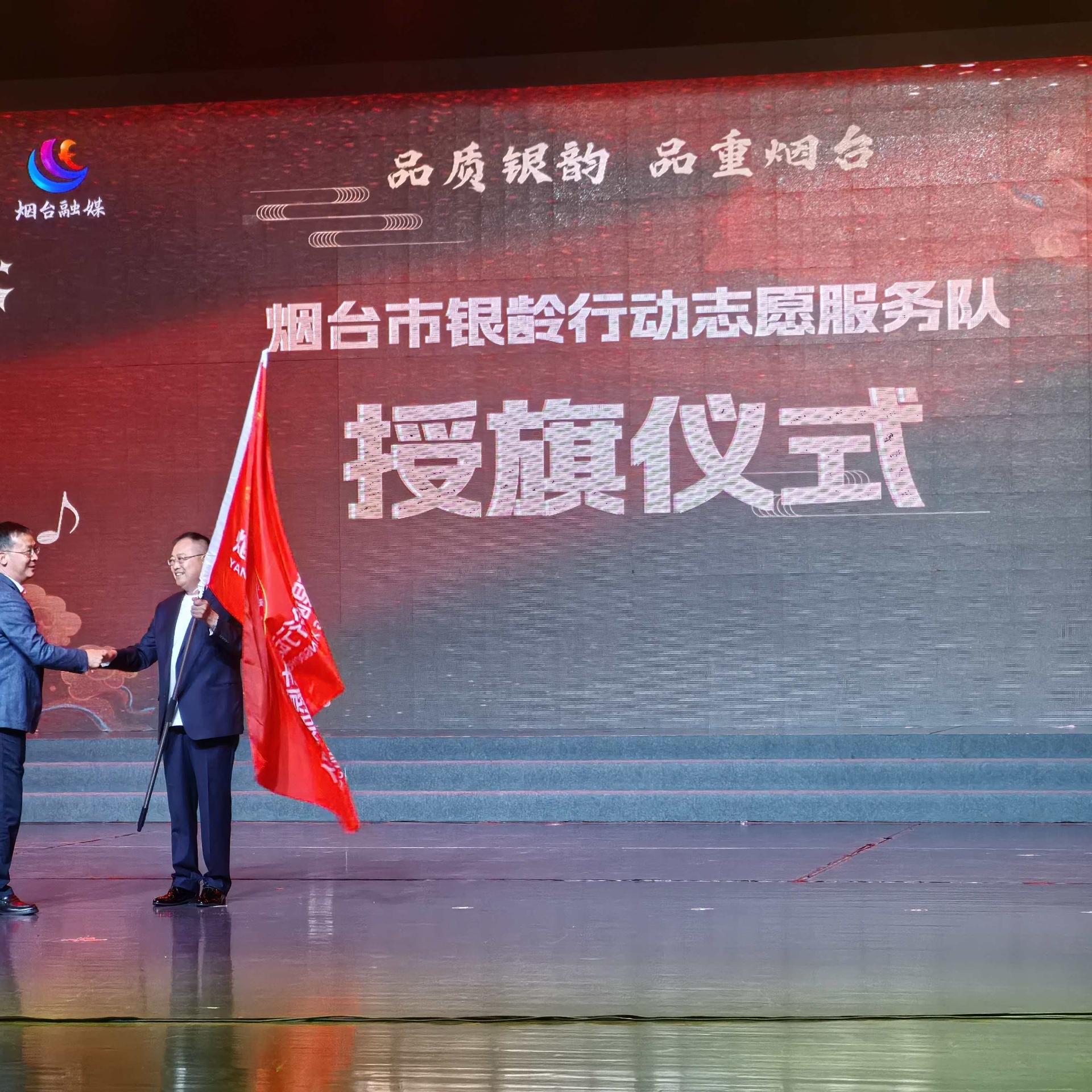 金苹果文明传播志愿服务中心参加烟台市银龄行动志愿服务队授旗仪式。