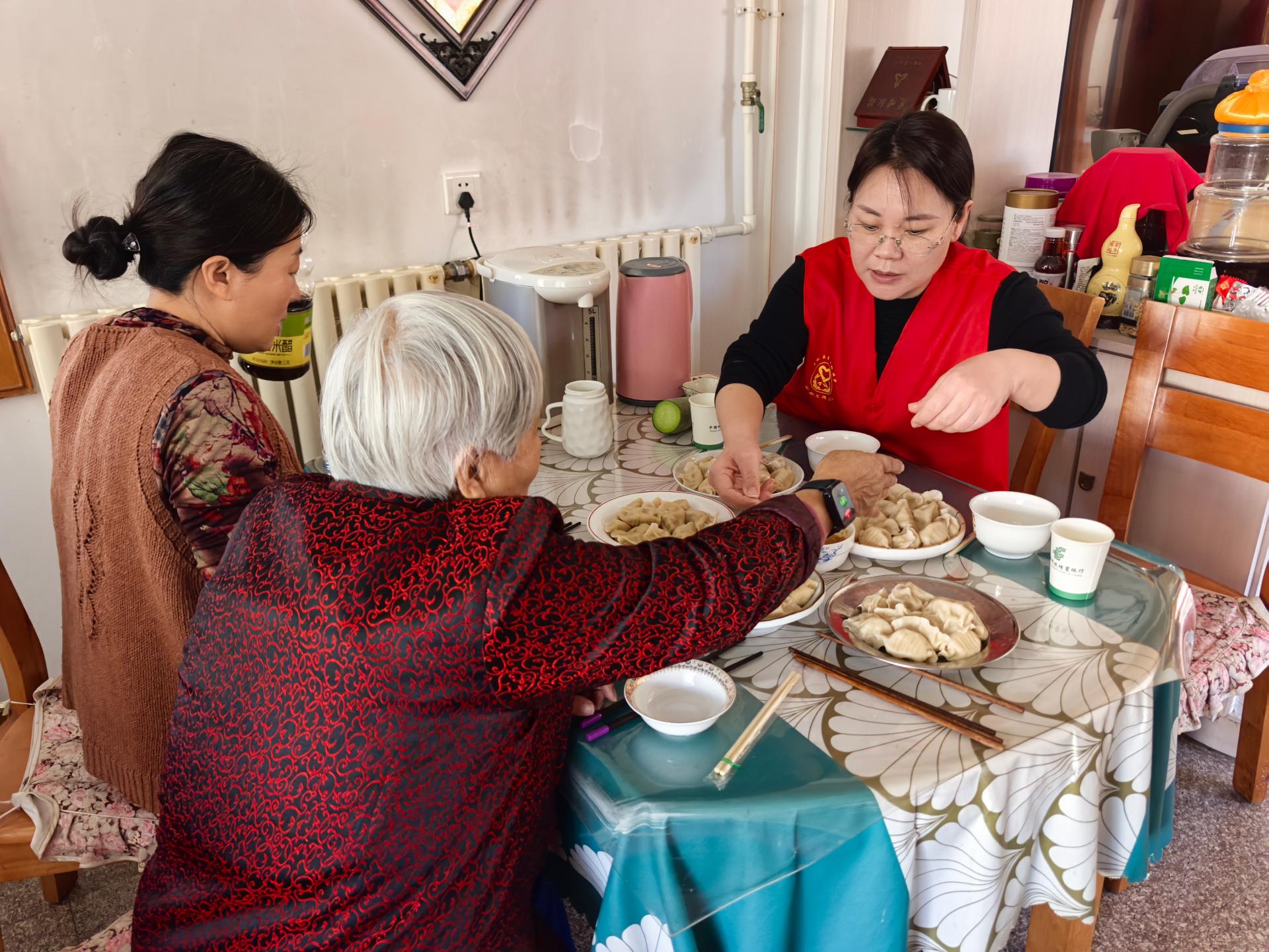 晨光暖夕阳活动继续 冬至时节,寒风虽凛,却吹不散招远市手牵手爱心志愿者联合会带来的融融暖意。志愿者们带着精心准备的食材和满满心意,走进救助生奶奶的家中——这处由姑姑提供的温馨住所。一进门就看见奶奶带着给配置的应急手环!面对奶奶抱恙的身体,大家分工协作,和面、调馅、擀皮,一双双巧手翻飞间,一盘盘圆润饱满的饺子整齐排列。热气腾腾的饺子出锅后,屋内飘香四溢,老人(孩子去学习班不在家里)围坐桌旁,笑声与话语交织成温暖的乐章。志愿者们不仅用美食驱散了冬日的寒意,更以陪伴传递了社会的关怀,让这个冬至,成为老人和孩子心中一抹难忘的温情记忆。
