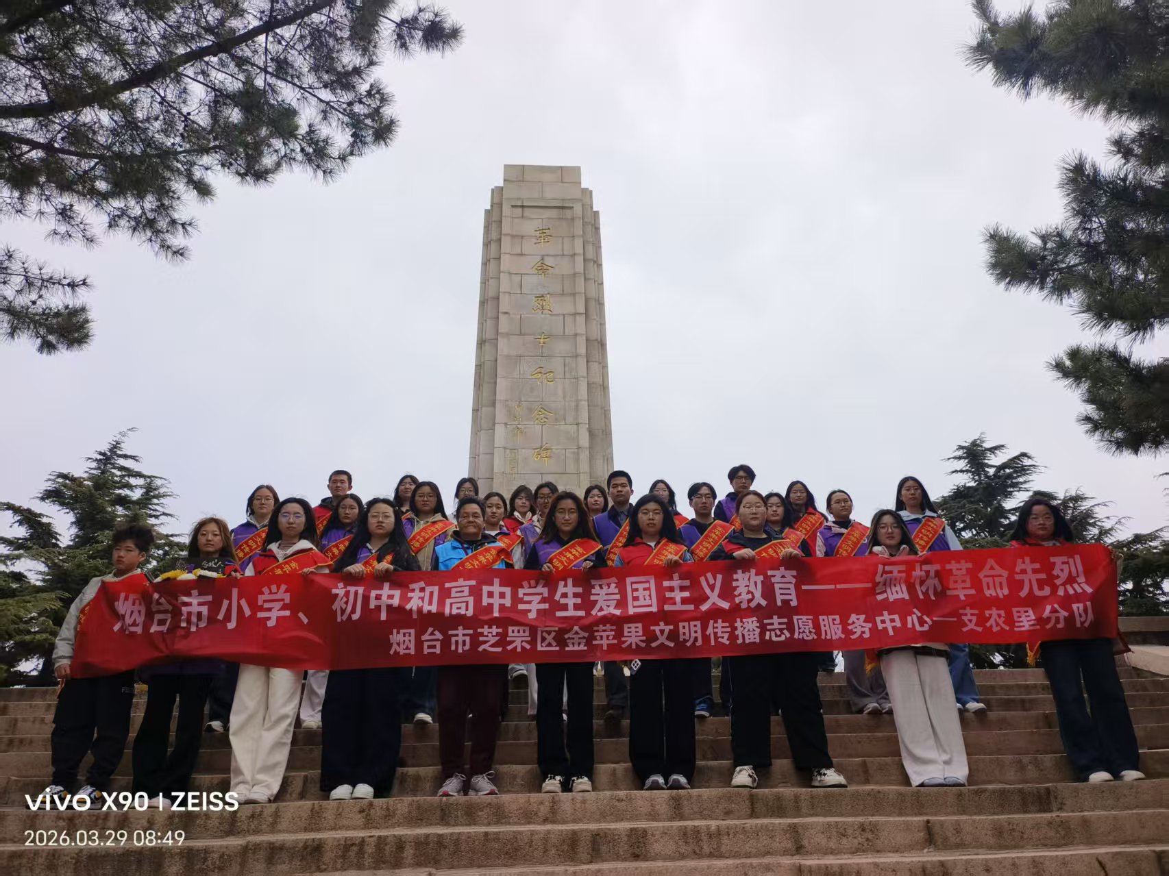 爱国主义教育—缅怀革命先烈 芝罘区金苹果文明传播志愿服务中心一支农里分队,定于2o26年3月29日上午8时至11:30时在芝罘区西炮台烈士陵园文明祭祀。