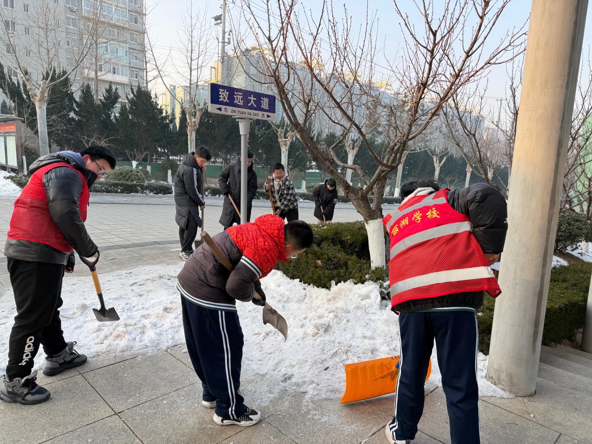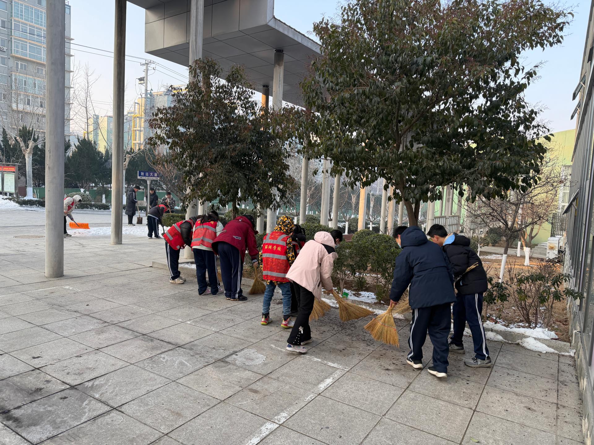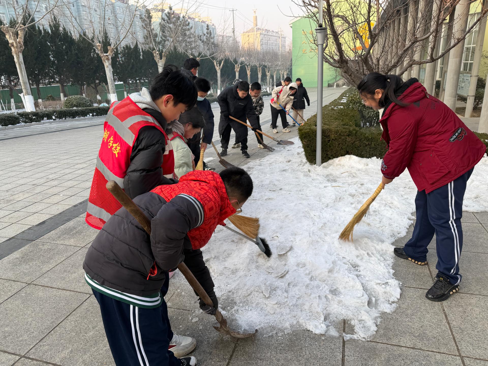 请同学们准时带清扫积雪工具在丽湖学校南门集合 1. 及时清理校园内外及周边主次干道、人行道积雪,消除出行安全隐患,保障师生及居民通行安全。 2. 培养学生志愿服务精神与责任担当,增强团队协作能力,传递冬日温情。 3. 展现学校学子良好精神风貌,营造“奉献、友爱、互助、进步”的校园氛围。
