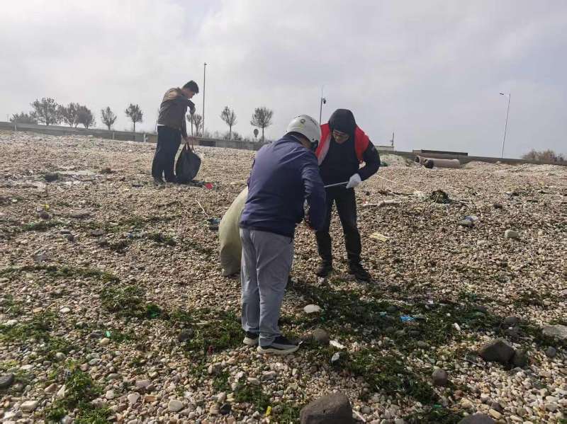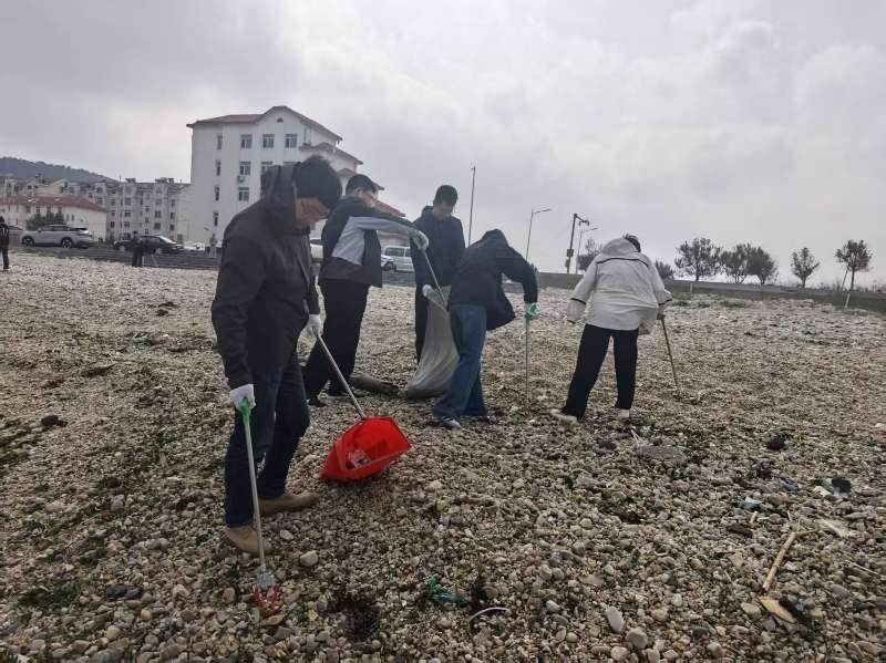 区海洋经济促进中心组织志愿者开展净滩行动,清理岸滩塑料等垃圾,主要清理沙滩漂流废弃物、生活垃圾、破旧渔网等,保护海洋生态环境,助力长岛零碳岛建设。