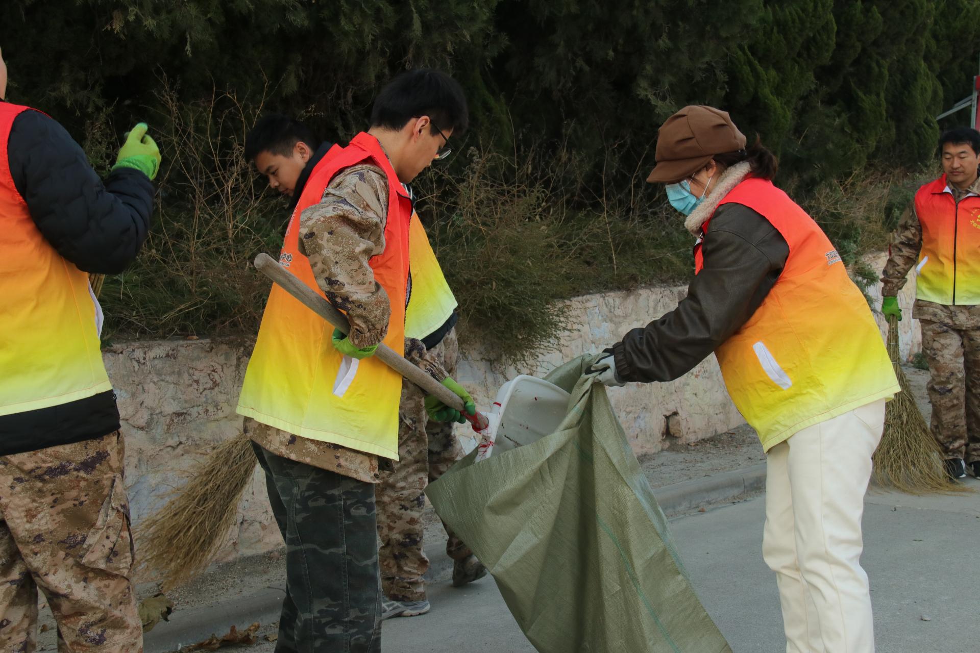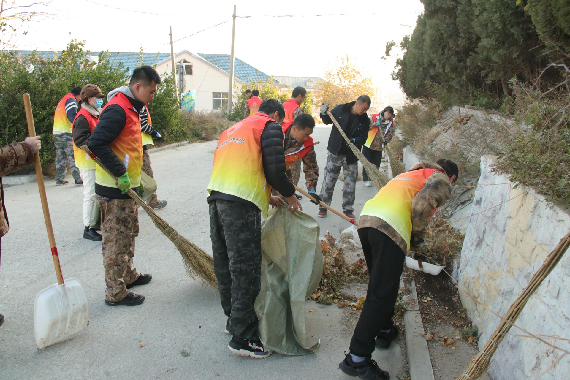 志愿服务队员手持扫帚、铁锹、垃圾袋等工具,迅速投入到卫生清扫工作中。深入渔村主干道,细致捡拾塑料袋、烟头、枯枝等垃圾,还主干道整洁环境。