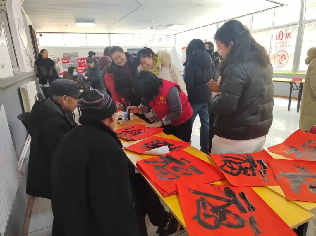 送福迎春环节更添温情,社区特邀书法家协会成员现场挥毫,为居民手写福字、送上新春祝福。红纸铺展,墨香萦绕,一幅幅饱含心意的书法作品,让居民在感受传统文化魅力的同时,收获别样的“健康年礼”,邻里间温情涌动,年味愈发浓厚。