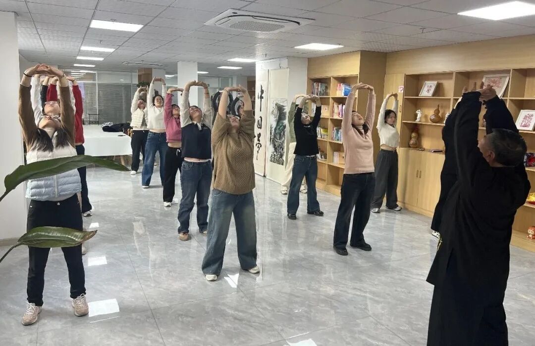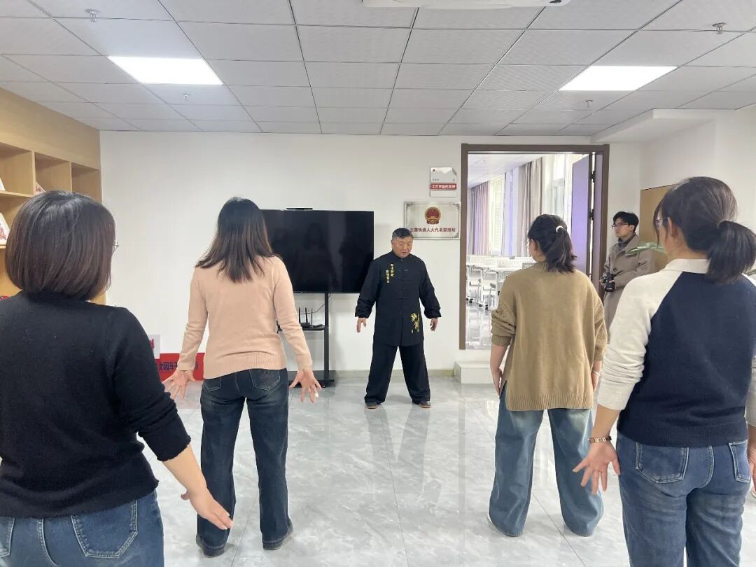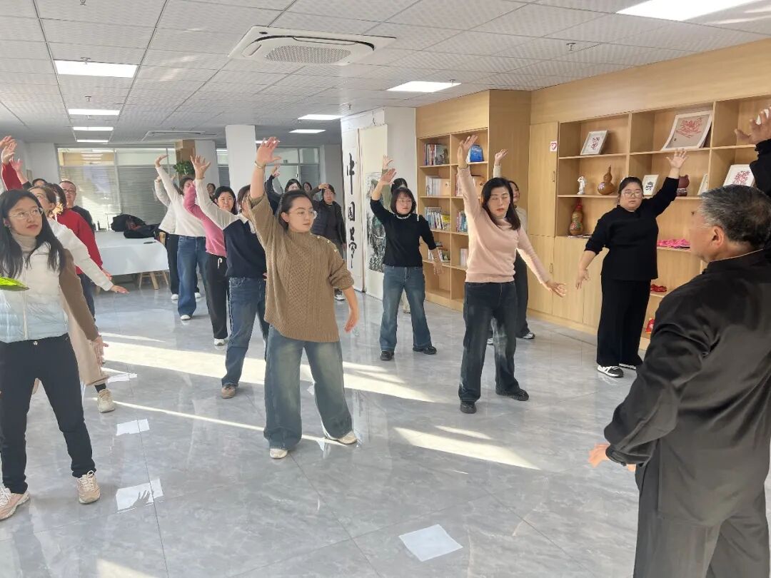 教学现场暖意融融,姜言宽老师凭借数十年深耕武术与养生领域的专业功底,采用“文化讲解+功法教学”双轨模式,一边示范动作,一边为居民溯源功法承载的中华传统文化脉络:从《黄帝内经》的养生理念,到传统哲学对“身心和谐”的追求,让居民在抬手、转身、吐纳的沉浸式体验中,不仅学会一套科学的健身技法,更真切触摸到文化社区的“精神内核”。居民们时而跟着老师纠正动作细节,时而分享自家长辈流传的养生心得,原本因楼层间隔略显陌生的街坊邻里,因这份对传统文化的共同热爱悄然拉近距离,“邻里相亲、文化相融”的氛围在潜移默化中愈发浓厚。