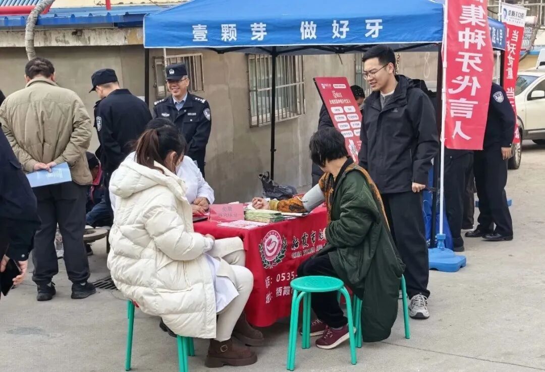 活动现场内容丰富、服务多元,真正实现了“一站式”便民惠民。在健康服务区,市妇幼保健院的医护团队早早搭起义诊台,为居民免费测量血压、开展甲状腺筛查,并根据个体情况提供个性化健康建议;中医师还现场为有需要的居民贴敷耳豆,通过传统疗法帮助缓解失眠、肩颈不适等问题,受到中老年群体的热烈欢迎。在安全宣传角,烟台市公安局留置看护支队的民警们通过发放宣传单页、互动问答等方式,向居民普及识别刷单返利、冒充公检法、虚假投资理财等常见诈骗手段的技巧,并结合冬季用电高峰,细致讲解家庭电路排查、取暖设备使用等安全知识,切实提升居民的安全防范意识。不远处的口腔义诊区同样人气高涨,壹颗芽口腔诊所与仁德口腔诊所的专业医师为居民提供免费口腔检查、牙周健康评估及日常护理指导,倡导“早发现、早干预”的口腔健康理念。而在最接地气的便民服务摊位前,来自爱心商铺的老师傅手持磨刀石,专注地为居民打磨剪刀、菜刀,一把把钝刃焕然一新,引来阵阵感谢和点赞。