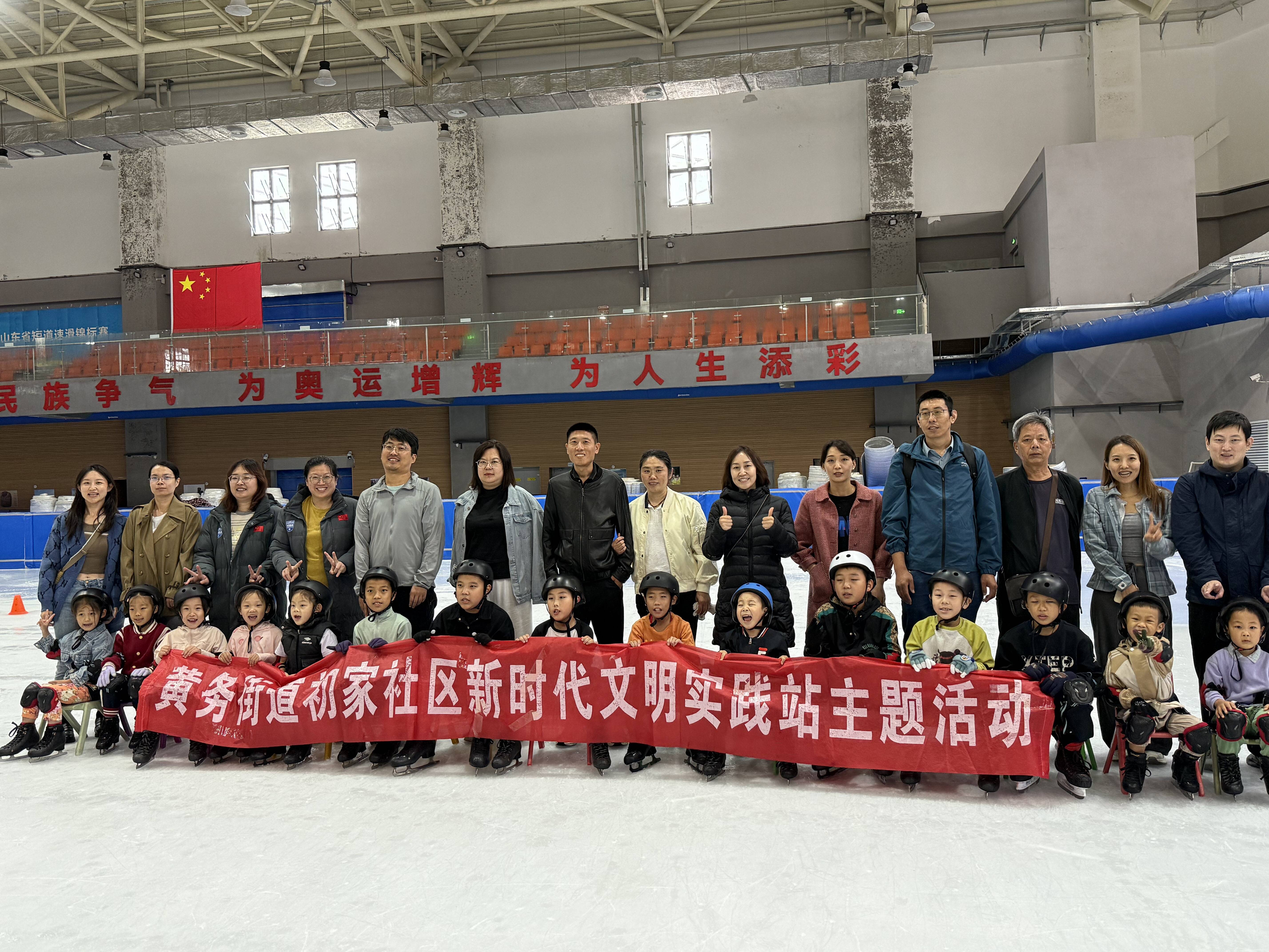新时代文明实践丨初家社区携手烟台冰上运动中心开展亲子滑冰研学活动