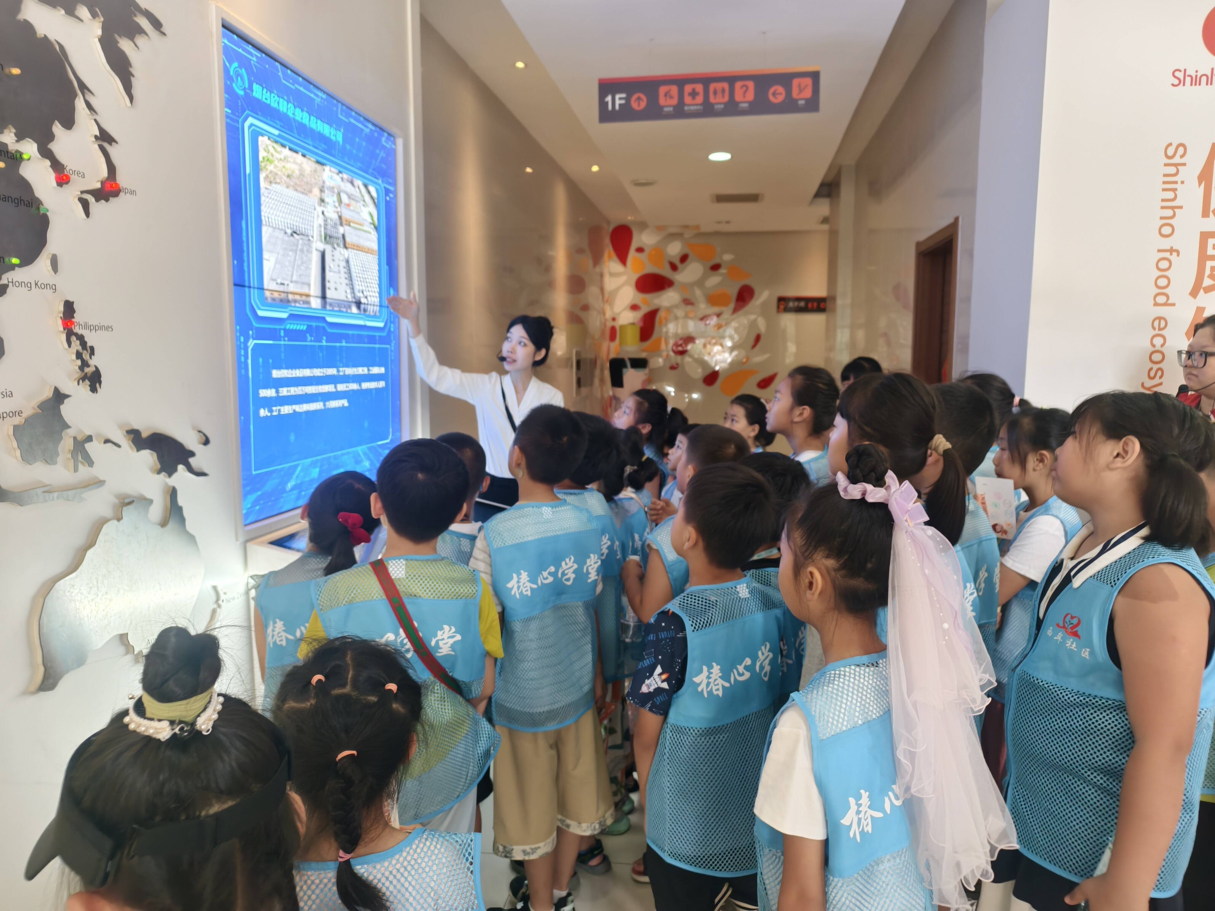 清晨,孩子们早早来到西牟社区党群服务中心集合,共同乘坐大巴车前往欣和酱油工厂,车上孩子们非常开心,期待着接下来的研学之旅。到达厂区后,首先在讲解员的带领下参观文化展厅,大家了解到欣和酱油的发展历程、品牌故事以及多品牌战略等。在讲解期间,为调动孩子们的积极性,讲解员还通过互动问答的方式,鼓励孩子们回答有关“酱油知识问答” 小知识。同时,孩子们还参观了模拟种植区、地图和生态流程图等,帮助他们更好地理解食物从田间到餐桌的全过程。随后,大家来到了最受孩子们喜爱的美食教室,只见桌上摆放着琳琅满目的欣和小零食、酱油冰激凌、水果泡醋等特色美食,供大家品尝。紧接着,孩子们新奇地来到了生产车间,实地观察酱油的原料处理、发酵、杀菌、包装等全过程,并了解大豆和小麦是如何变成神奇的曲料,最终变成酱油。